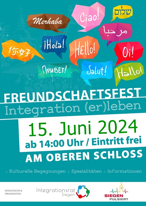 In Siegen leben Menschen aus fast 140 Ländern, knapp 25 Prozent aller Einwohnerinnen und Einwohner haben eine eigene oder familiäre Einwanderungserfahrung. Zahlreiche Menschen und Organisationen leisten durch ihre soziale und kulturelle Arbeit einen unverzichtbaren Beitrag für gleichberechtigte gesellschaftliche Teilhabe und demokratisches Miteinander und positionieren sich gegen Diskriminierung und Ausgrenzung. Das traditionelle Freundschaftsfest ist alljährlich sichtbares Zeichen für diesen Einsatz. Dort kann man ins Gespräch kommen, die kulturelle Vielfalt Siegens erleben und sich über das ehrenamtliche Engagement der zahlreichen Migrantenselbstorganisationen und anderer integrativ wirkender Akteure zu informieren.