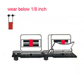 To measure what the consumption grade of the record and play heads of a Revox tape recorder is it usually needs a special reference tape and some electronic measuring devices. The following should give you a first help before you decide if your recorder heads needs a check up before replacement or if you have to estimate a fair price of a used Revox tape recorder equipment. To look at the recorder heads will give you a rough estimate in what conditions this parts are without any electronic measurement. For concealed heads take a little mirror to spy. The recorder heads are quite okay as long as visible wear of the play head and record head is below 1/8 inch. (approximately 3mm) Below that the recorder heads should be replaced to get the original recording and reproducing results. |